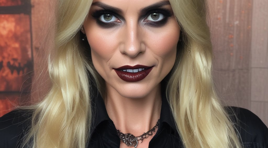 Blood Drips: Draw small drips from mouth corners with red liner. Blend top of each drip slightly with fingertip.